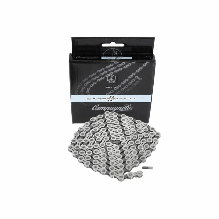 La chaîne Campagnolo Potenza 11 Vitesses fonctionne parfaitement avec les groupes complets 11 vitesses Campagnolo. Il présente une épaisseur de 5,5 mm qui a été combinée avec de nouveaux matériaux et un traitement anti-friction spécial pour permettre une fluidité exceptionnelle. Système de fermeture Ultra-Maillon™ pour une longue durée de vie de la chaîne.