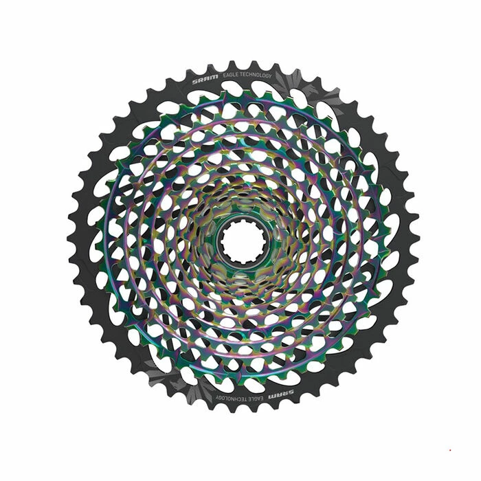 Les pilotes les plus aguerris ont désormais la possibilité de choisir des plateaux plus grands pour des vitesses de pointe plus élevées sans compromettre les capacités en montée. Comme les athlètes passent plus de temps sur les grands pignons de la cassette, ils gagnent en puissance et réduisent l’usure du matériel. Équipée de l’architecture X-Dome la plus robuste du marché et du corps de cassette XD éprouvé, elle est également rétro-compatible pour offrir encore plus de possibilités Eagle aux vélos actuels. Récompensée à de multiples reprises aux Jeux olympiques, en Coupe du monde et aux Championnats du monde, elle s’accorde parfaitement aux composants XX1 Eagle compatibles AXS. La cassette XG-1299 tire profit de toutes les options offertes par le nouveau Colorsystem Eagle. Disponible en Noir, Doré, Arc-en-ciel et le nouveau cuivre, la cassette XG-1299 complète le look des vélos les plus aboutis et les plus appréciés.