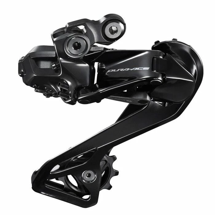 Le dérailleur arrière Shimano Dura-Ace R9250 dispose de la toute nouvelle technologie de pointe 12v . C’est le cerveau de la transmission 12 vitesses route Shimano Dura-Ace. C’est par le dérailleur que vous allez pouvoir recharger la batterie, mais aussi synchroniser vos leviers, ajuster l’indexation grâce à la technologie “Synchro Shift” qui aligne parfaitement la chaine si besoin. Le dérailleur présente une course spécifique pour venir se cacher entre le cadre et la roue arrière. Il est donc moins exposé aux chocs. La recharge se fait par un câble magnétique, le même que pour le capteur de puissance Shimano.